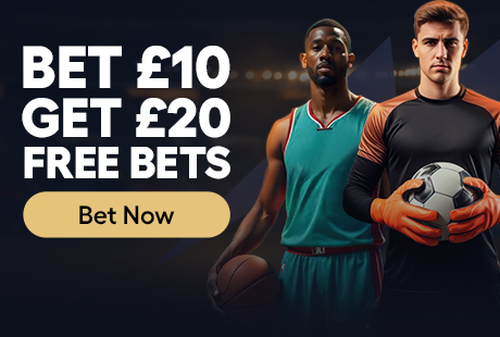 New Sportsbook customers only. Min £10 first bet at min odds 1/2 to qualify. Get 1 x £20 Free Bets. Free Bets valid 7 days, min odds 1/2 Stake not returned. Settled bets only. One offer per customer. Full T&Cs apply. 18+