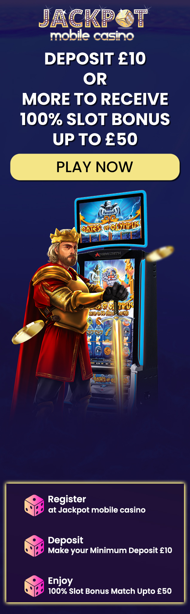 1. Deposit £10+ for a 100% Bonus Match up to £50